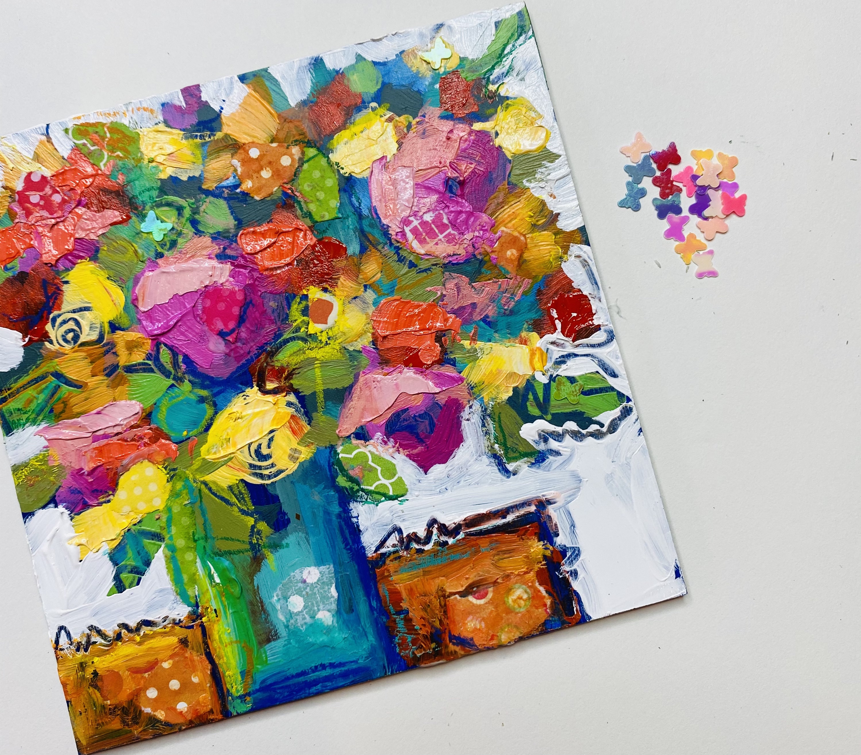 As a self-taught mixed media artist, I love bringing happy and fun into the world by creating colorful, textured art with lots of personality. I hope you will find courses here to help you learn, grow and discover your own artistic style!