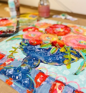 Painting instruction will be for a mixed media floral painting and will include supplies, warm up exercises, inspiration and planning, basic composition tips and color mixing/theory, mixed media techniques, exploration of your unique style, steps for painting and finishing touches.