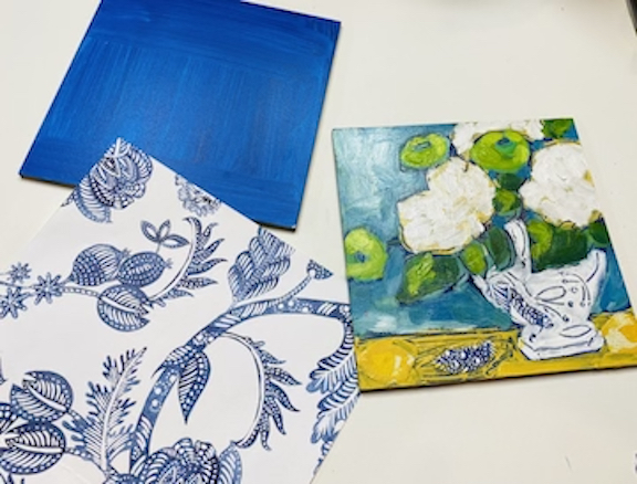 The basics of incorporating paint, collage and other fun elements to create interesting small floral paintings.